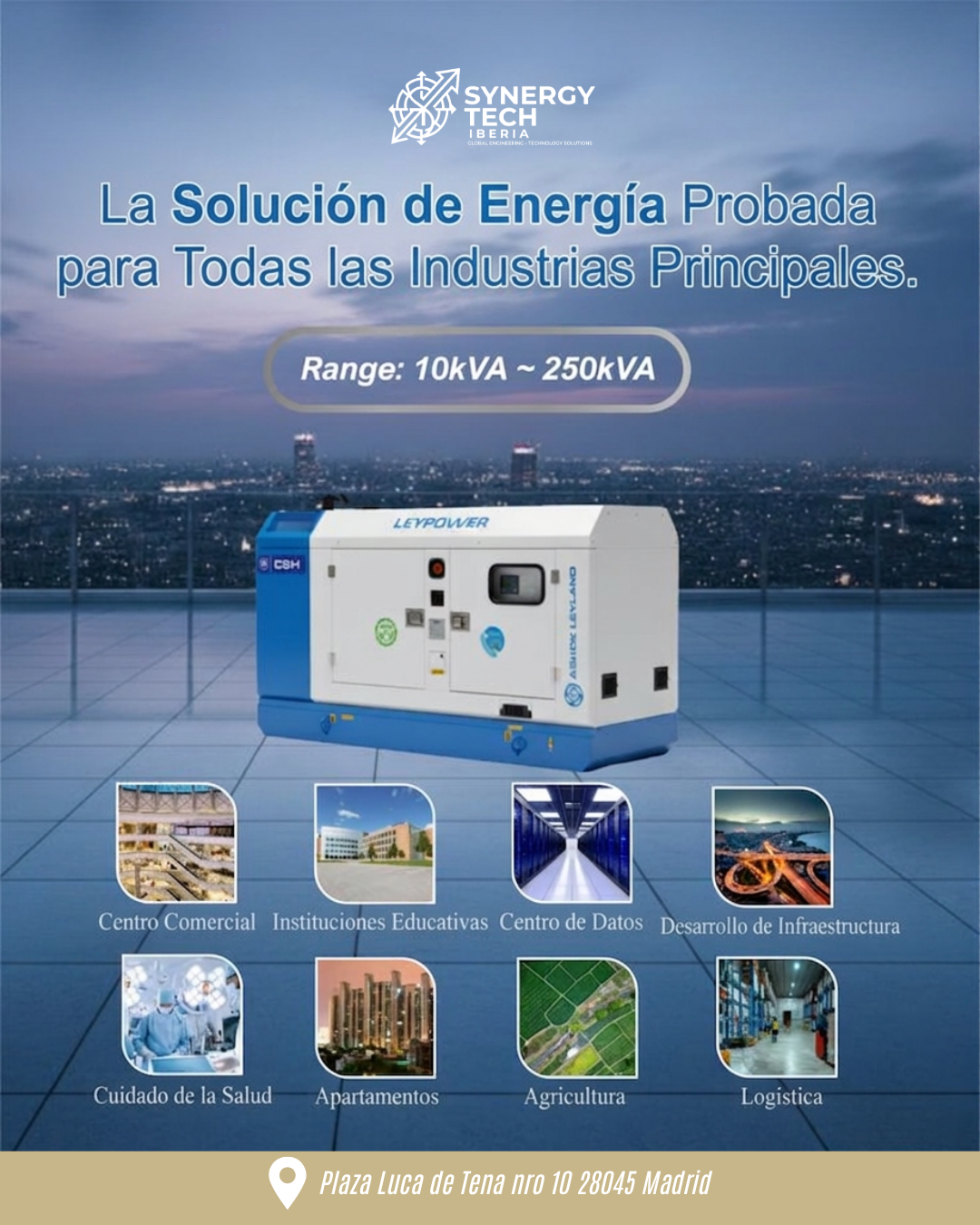 En Synergy Tech Iberia, somos líderes en la integración de soluciones energéticas y tecnológicas de alto rendimiento. Nuestra misión es impulsar la continuidad operativa de empresas y hogares mediante el suministro de equipos de generación eléctrica, sistemas de energía solar de última generación y bancos de carga de alta eficiencia.
